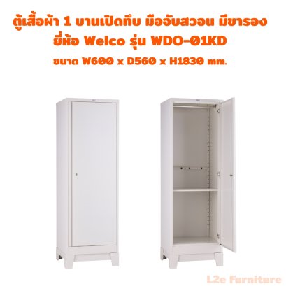 ตู้เสื้อผ้า 1 บานเปิดทึบ แบบมือจับสวอน มีขารอง มีราวแขวนผ้าและแผ่นชั้น ราคารวม VAT แล้ว กทม. และ ปริมณฑลส่งฟรี