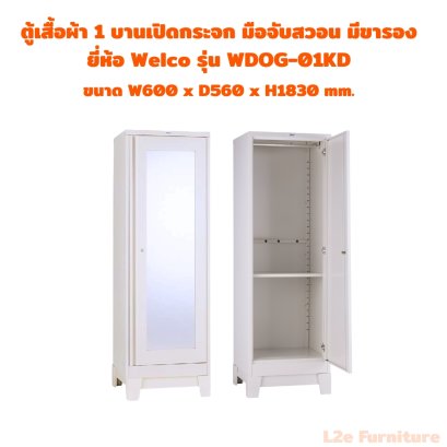 ตู้เสื้อผ้า 1 บานเปิดกระจก แบบมือจับสวอน มีขารอง มีราวแขวนผ้าและแผ่นชั้น ราคารวม VAT แล้ว กทม. และ ปริมณฑลส่งฟรี