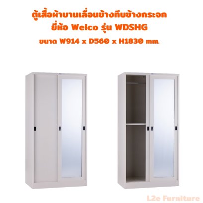 ตู้เสื้อผ้าบานเลื่อนทึบข้างกระจกข้าง มีราวแขวนผ้าและแผ่นชั้น ราคารวม VAT แล้ว กทม. และ ปริมณฑลส่งฟรี