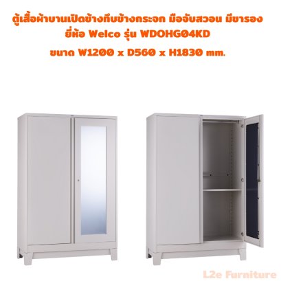 ตู้เสื้อผ้า 2 บานเปิดทึบข้างกระจกข้าง มือจับสวอน มีขารอง มีราวแขวนผ้าและแผ่นชั้น ราคารวม VAT แล้ว กทม. และ ปริมณฑลส่งฟรี